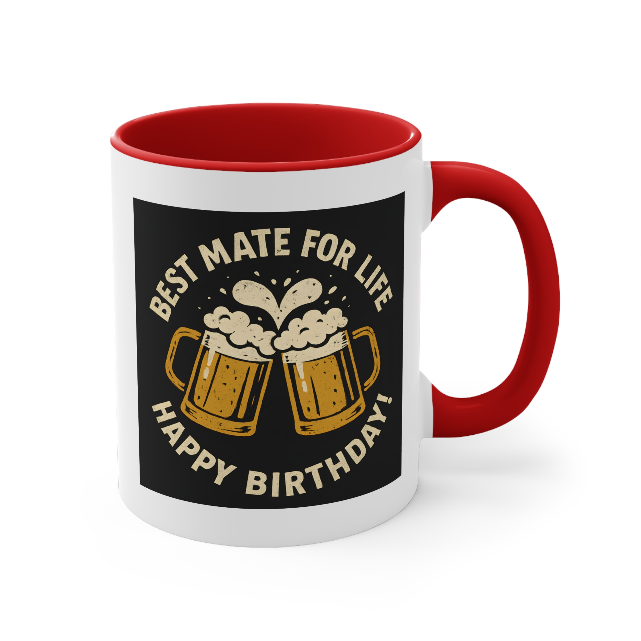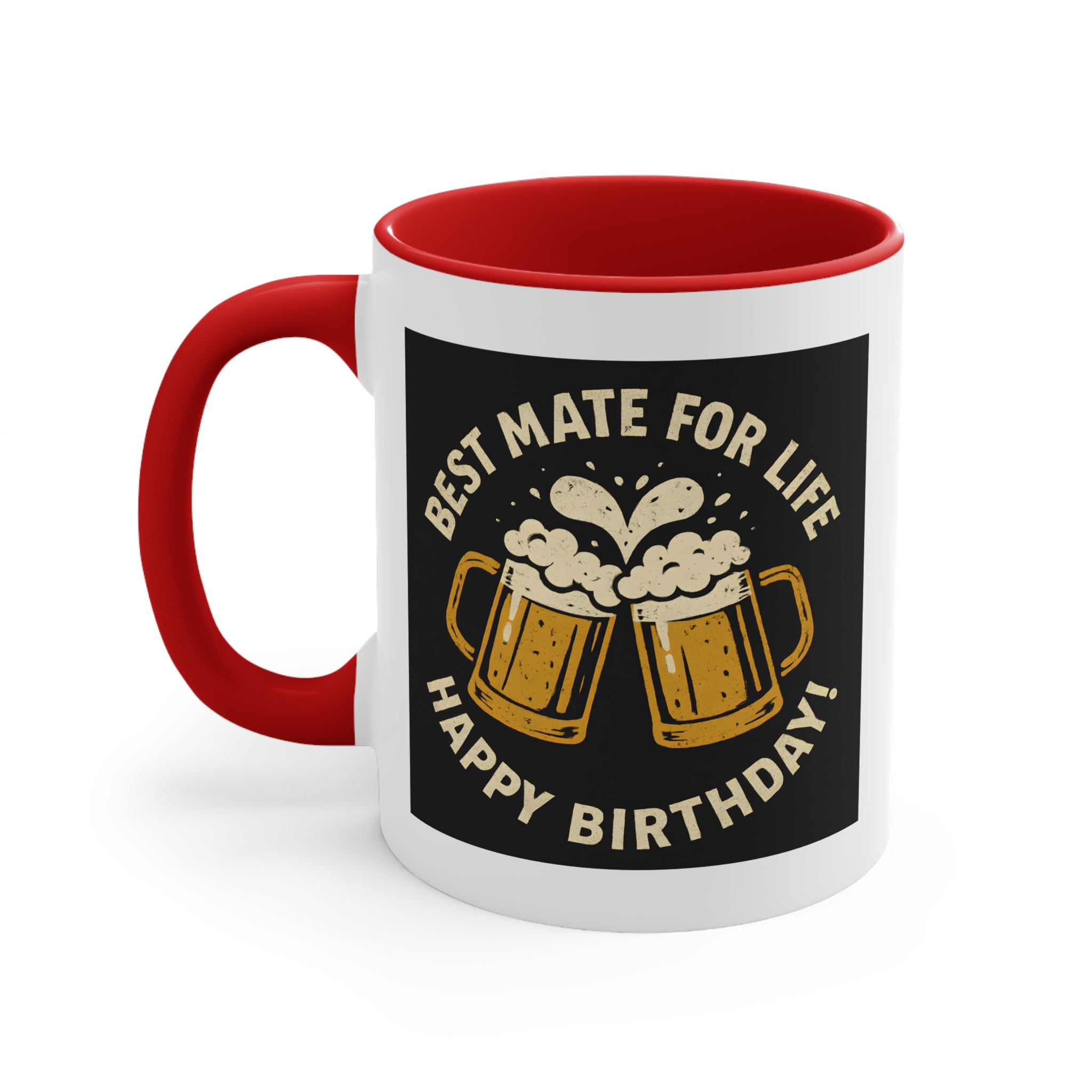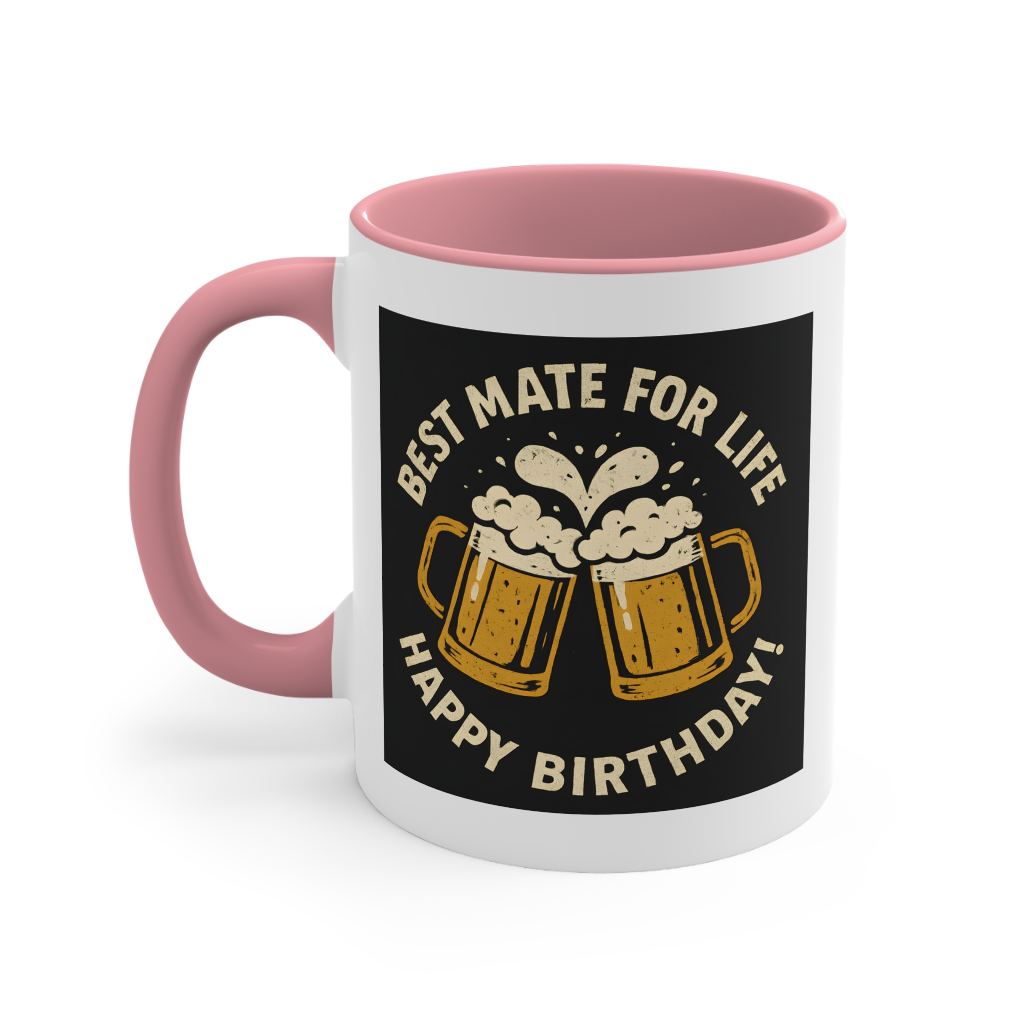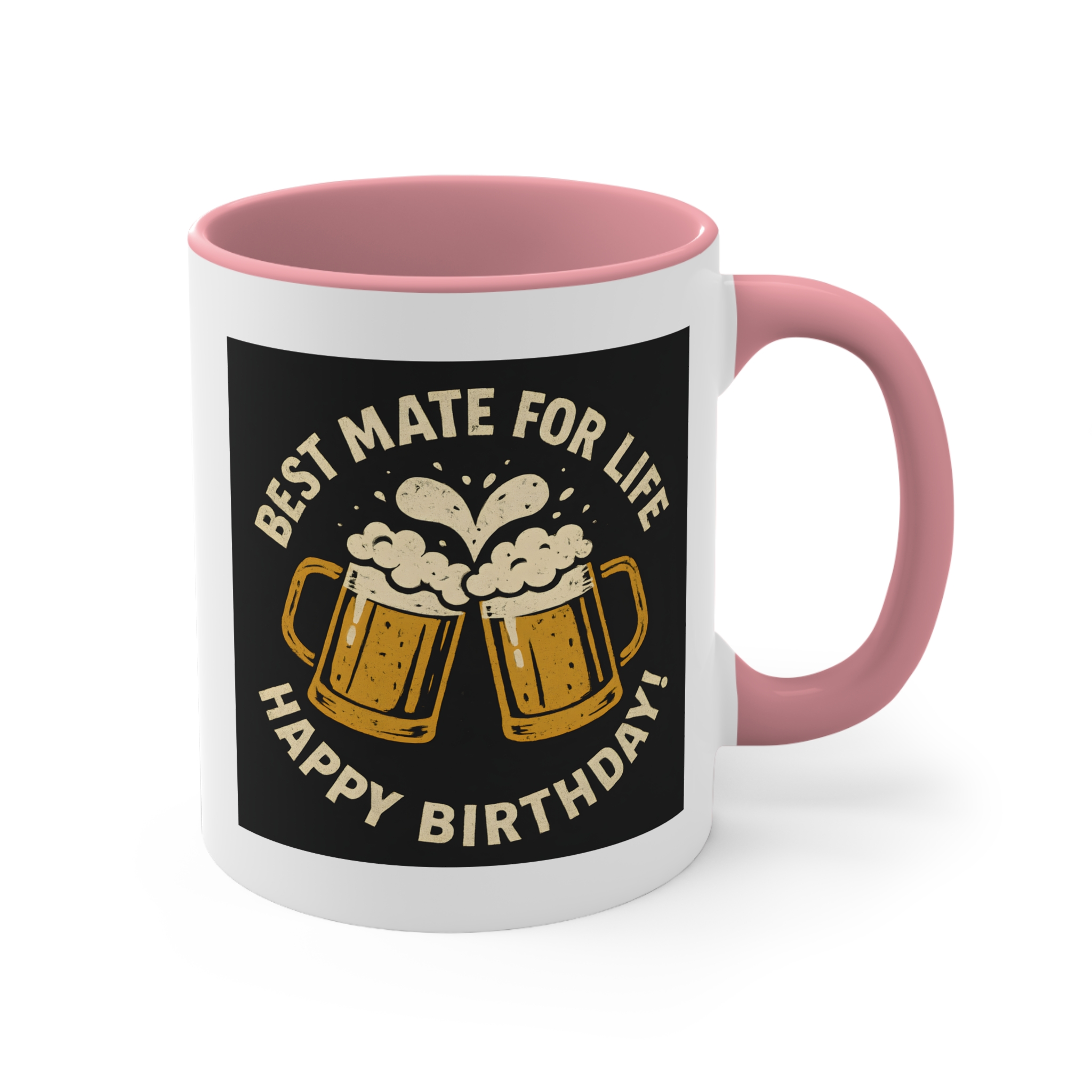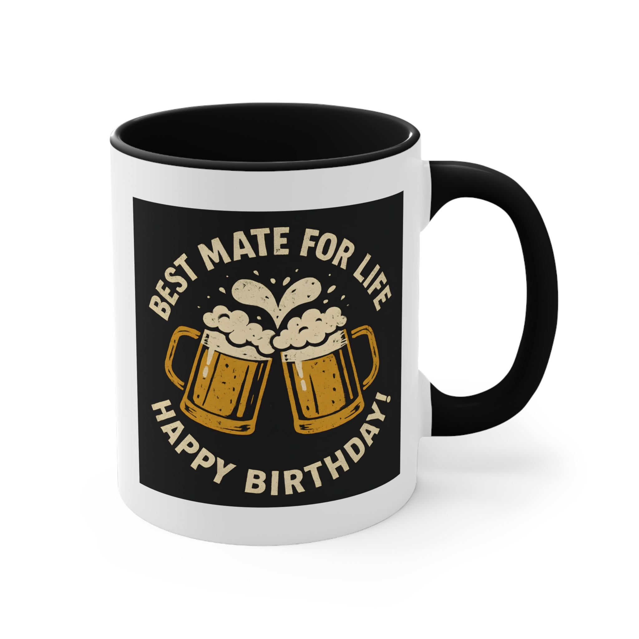 This best friend birthday mug is made for celebrating lifelong mates and unforgettable birthdays. Featuring a bold “Best Mate for Life – Happy Birthday” design with clinking beer mugs, this mug brings party vibes to every coffee or brew.