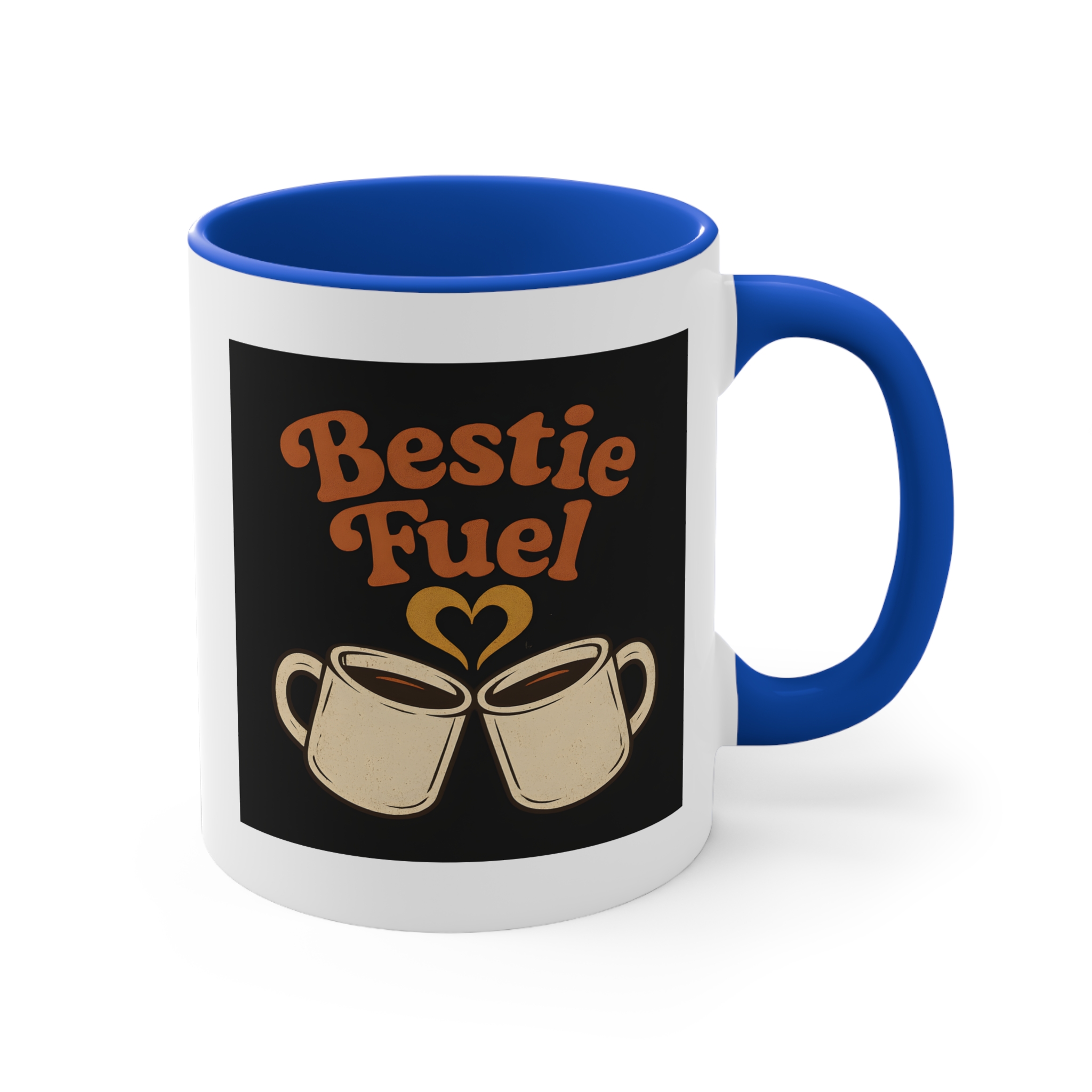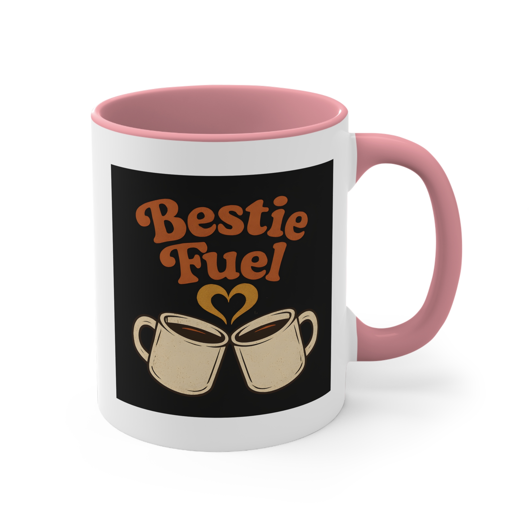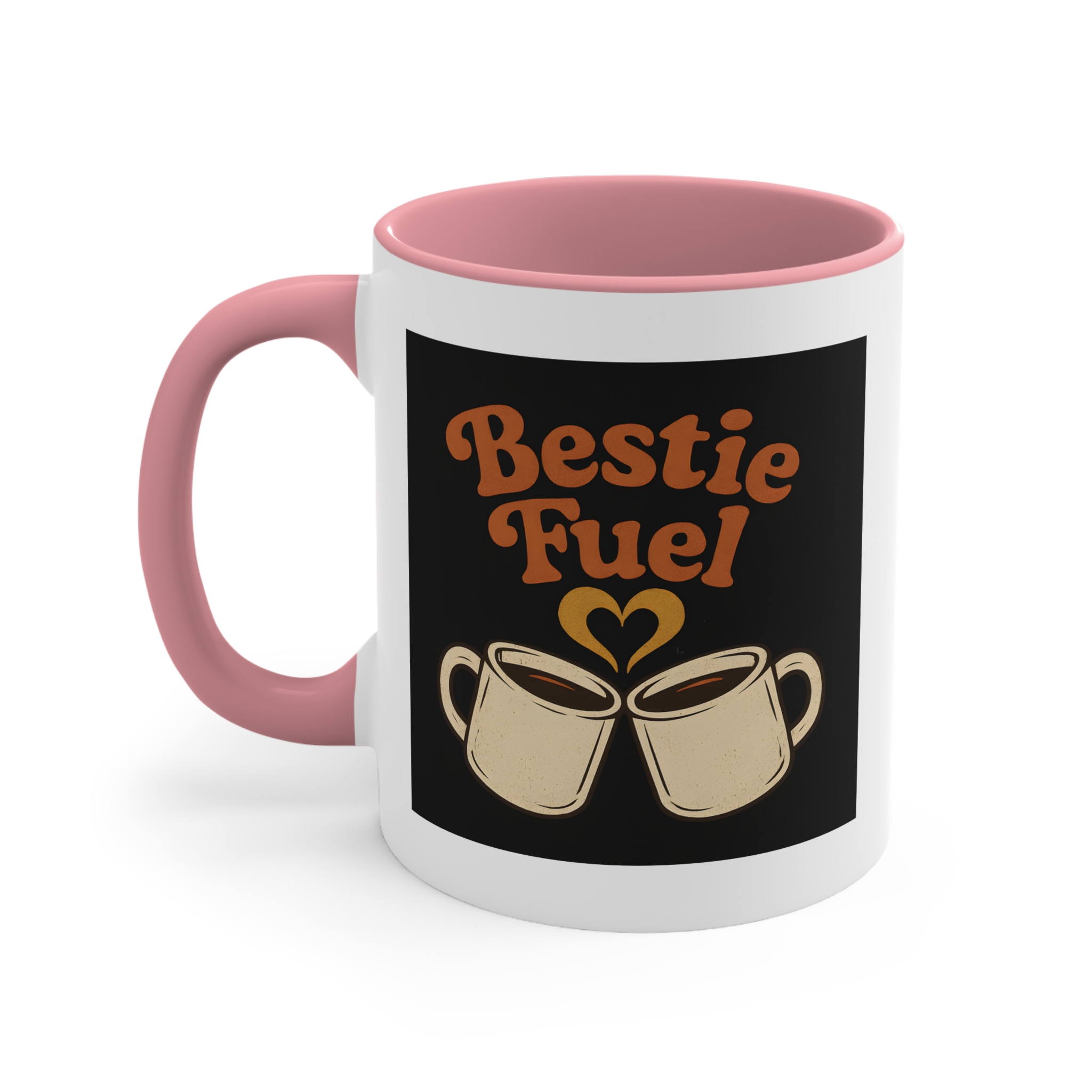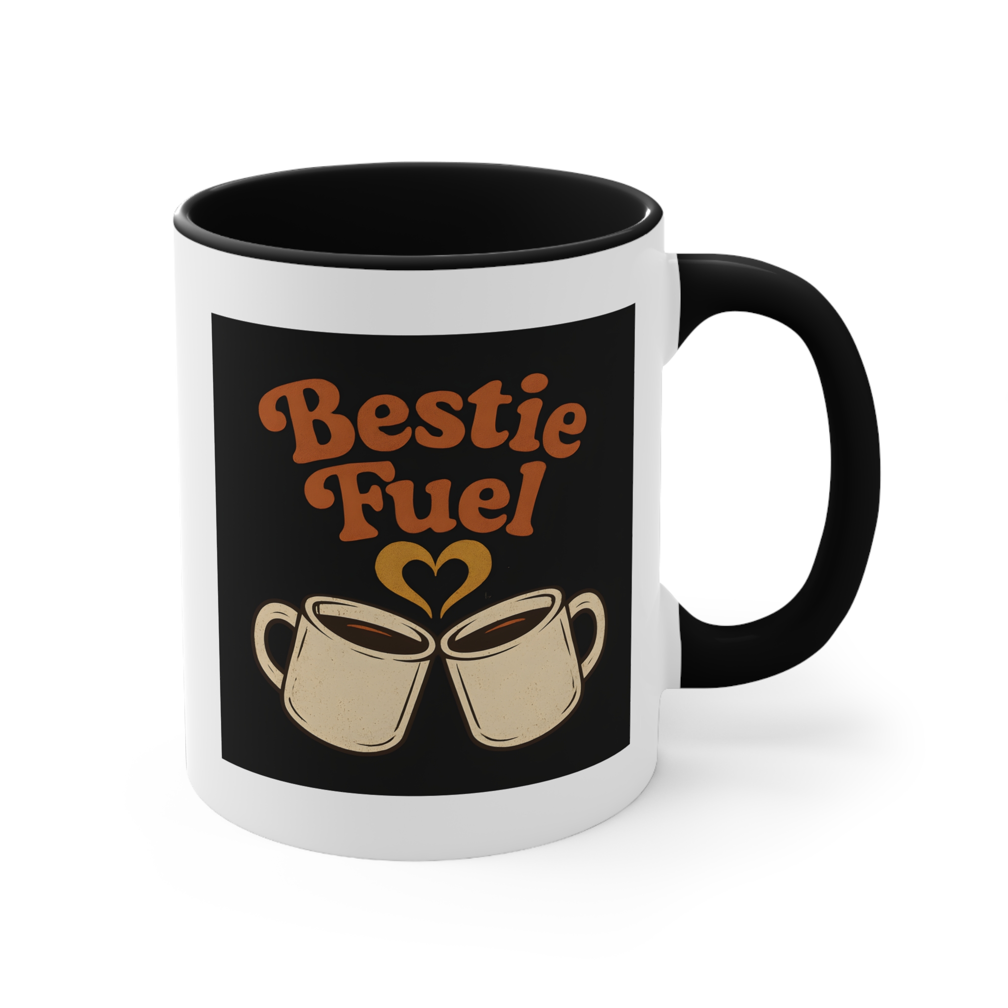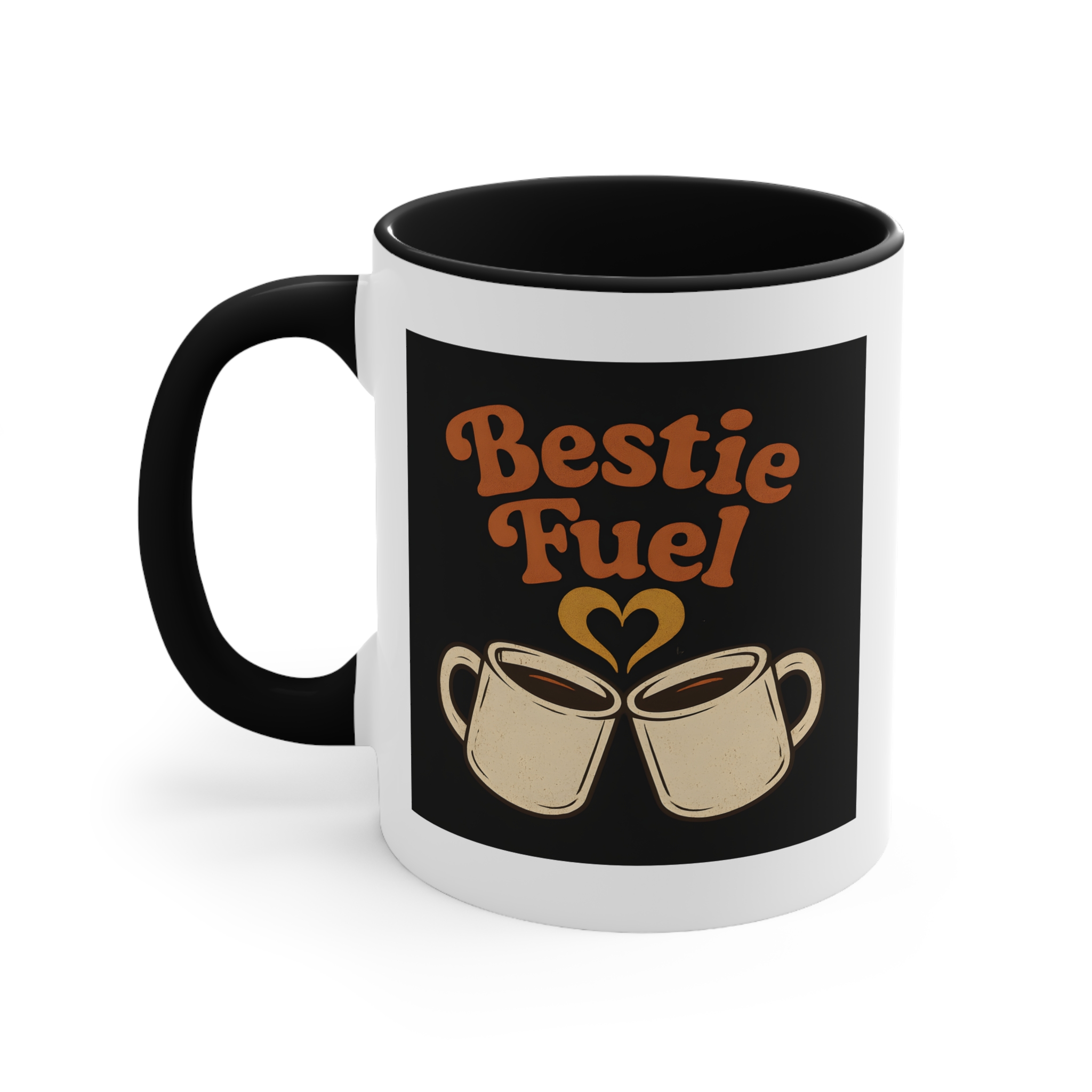 This bestie coffee mug is designed to celebrate friendship, coffee dates, and bestie bonding moments. Featuring a warm “Bestie Fuel” design with two coffee cups and a heart, this mug is perfect for sharing love one sip at a time.