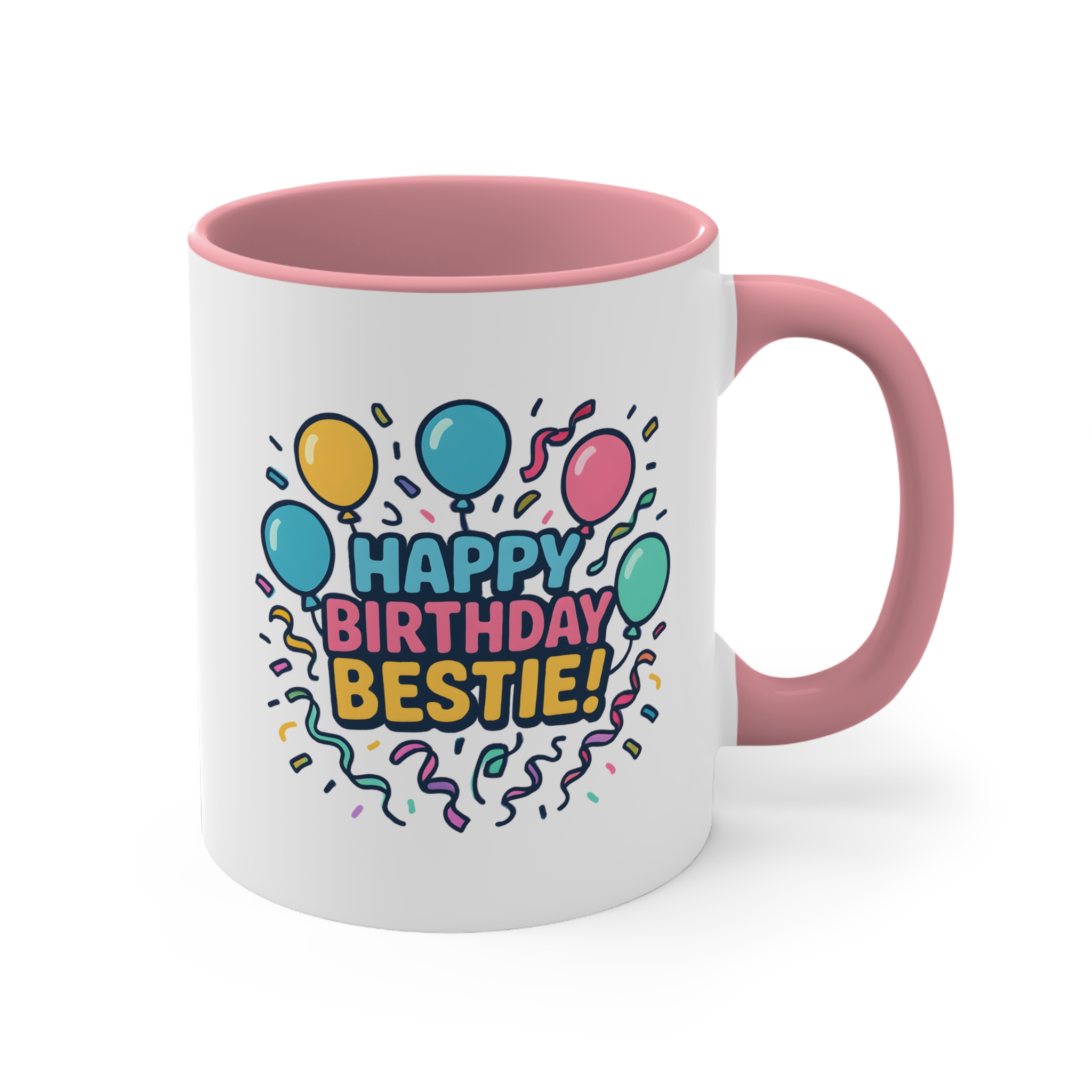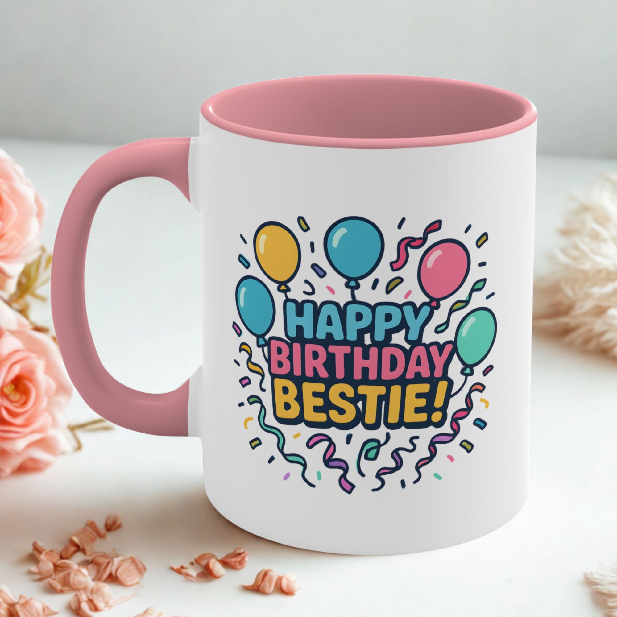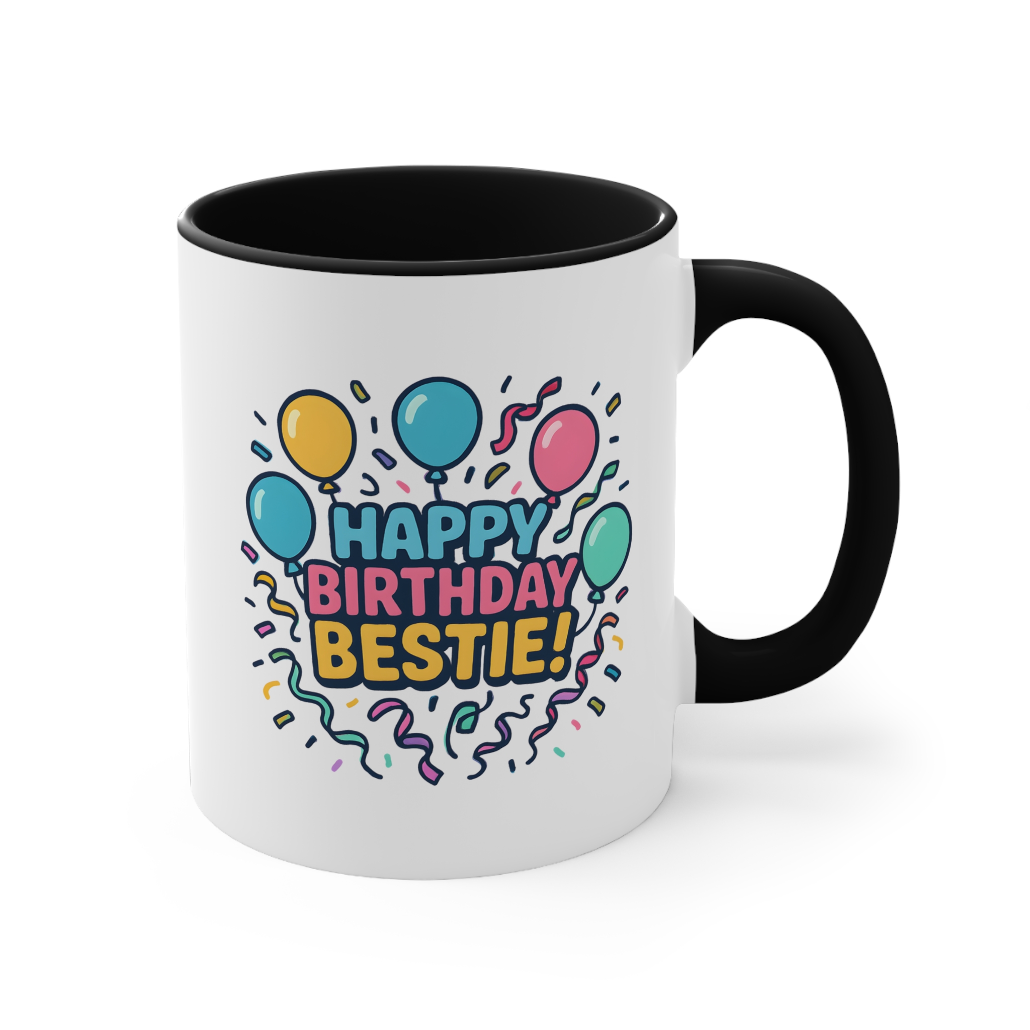 Celebrate your favourite person with this fun birthday mug for bestie. 11oz ceramic mug, microwave safe, hand wash recommended — perfect for birthday mornings and bestie smiles.