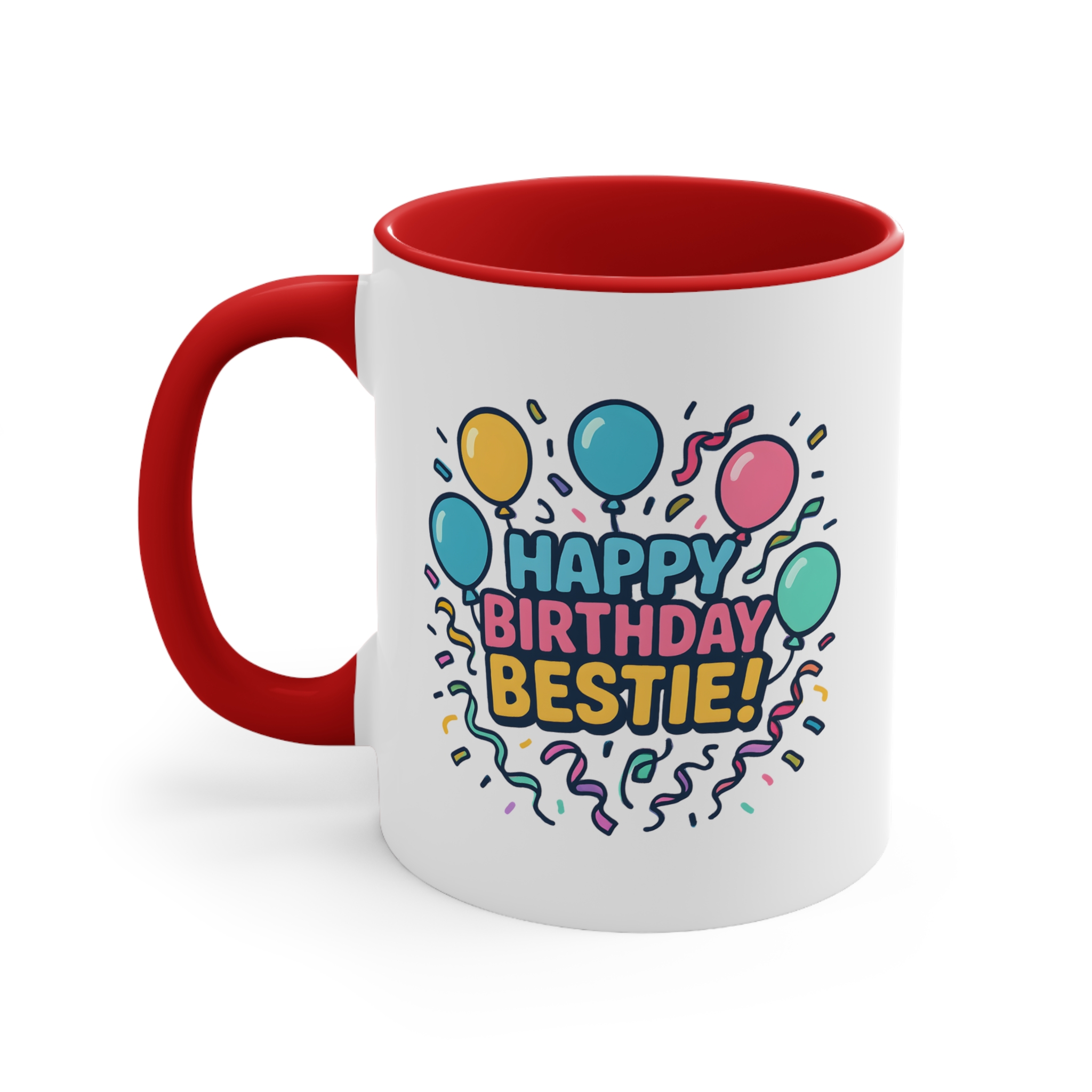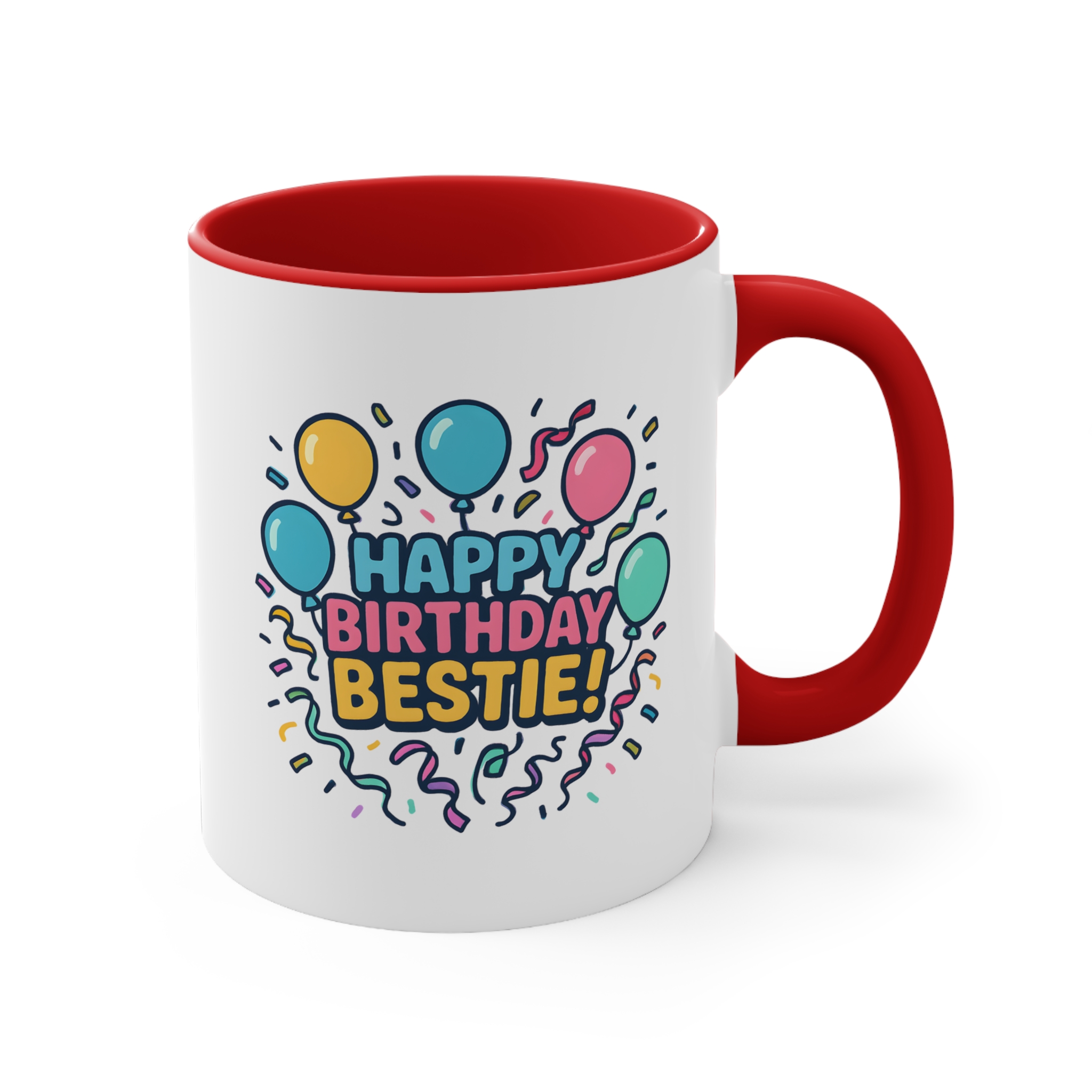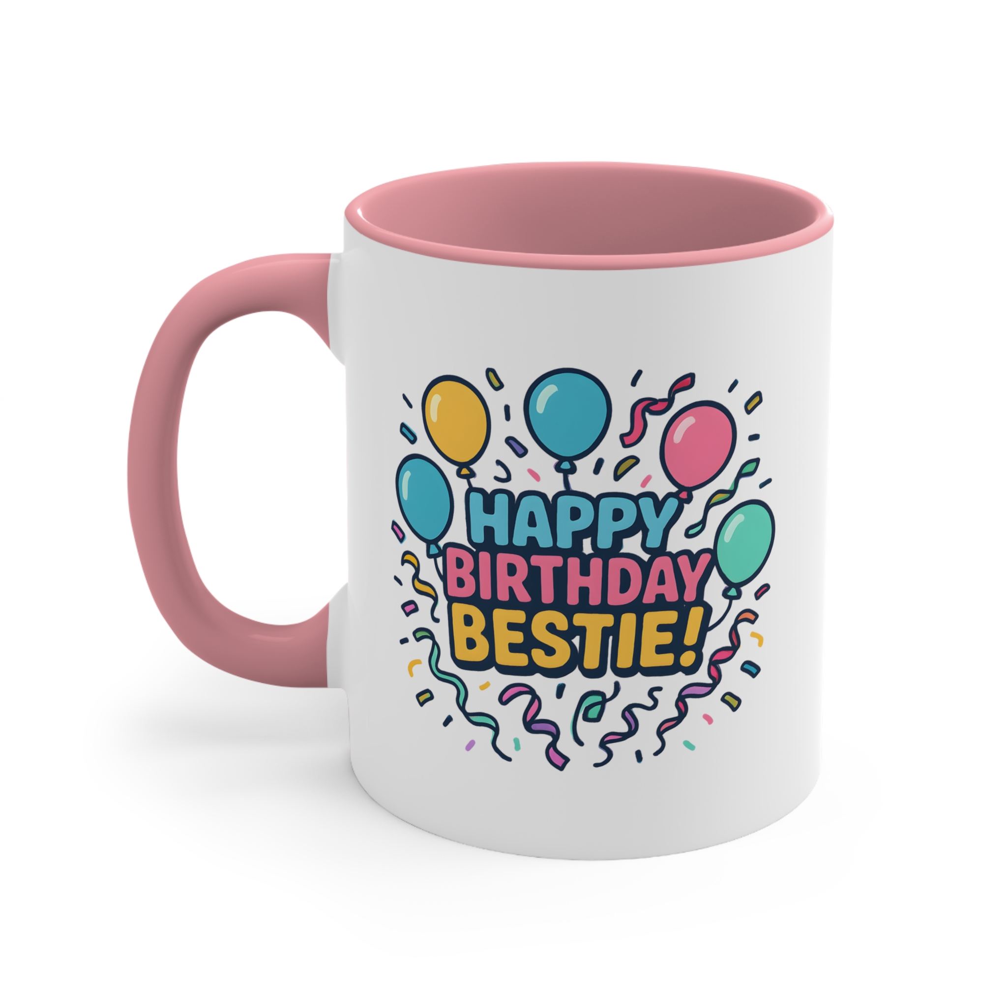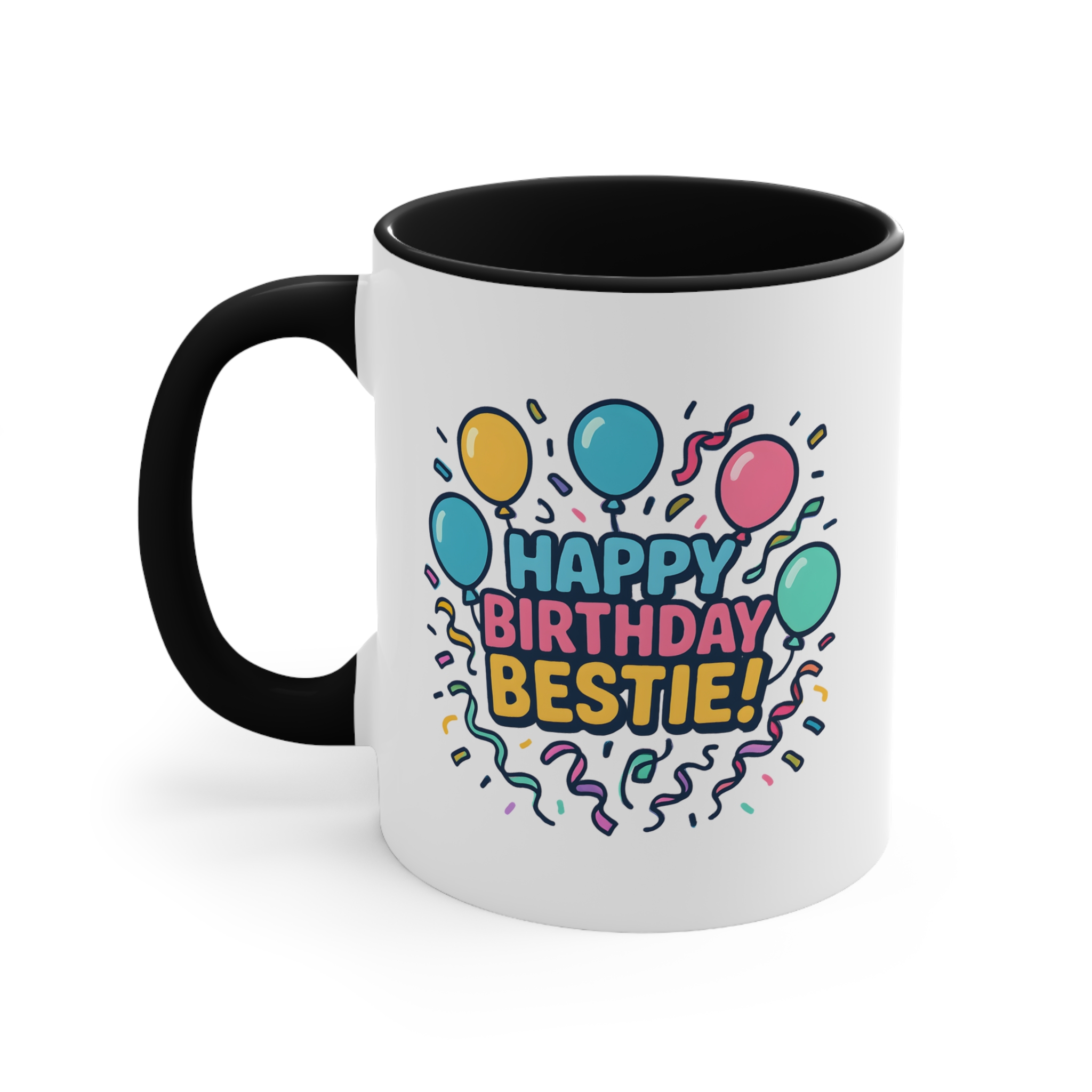 Celebrate your favourite person with this fun birthday mug for bestie. 11oz ceramic mug, microwave safe, hand wash recommended — perfect for birthday mornings and bestie smiles.
