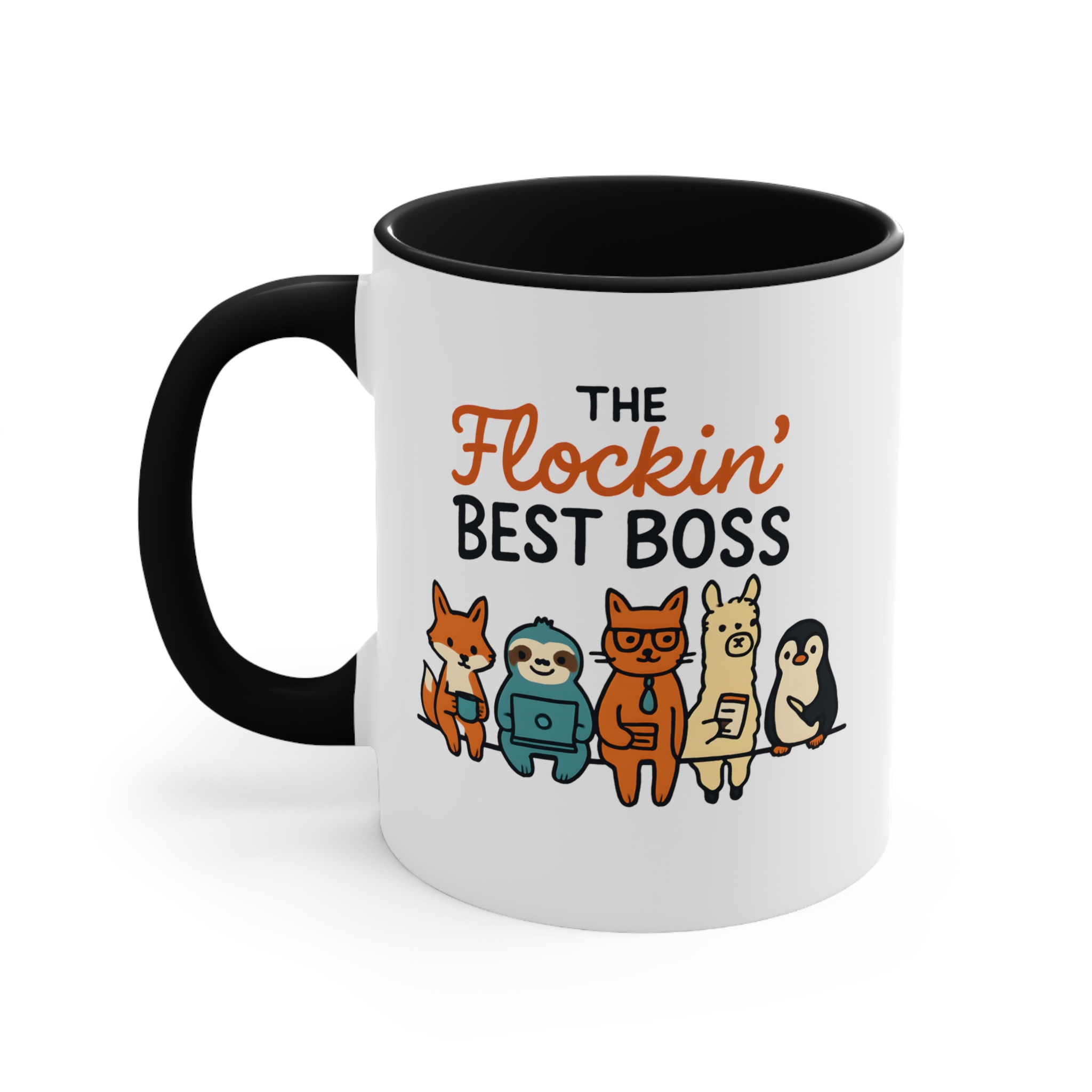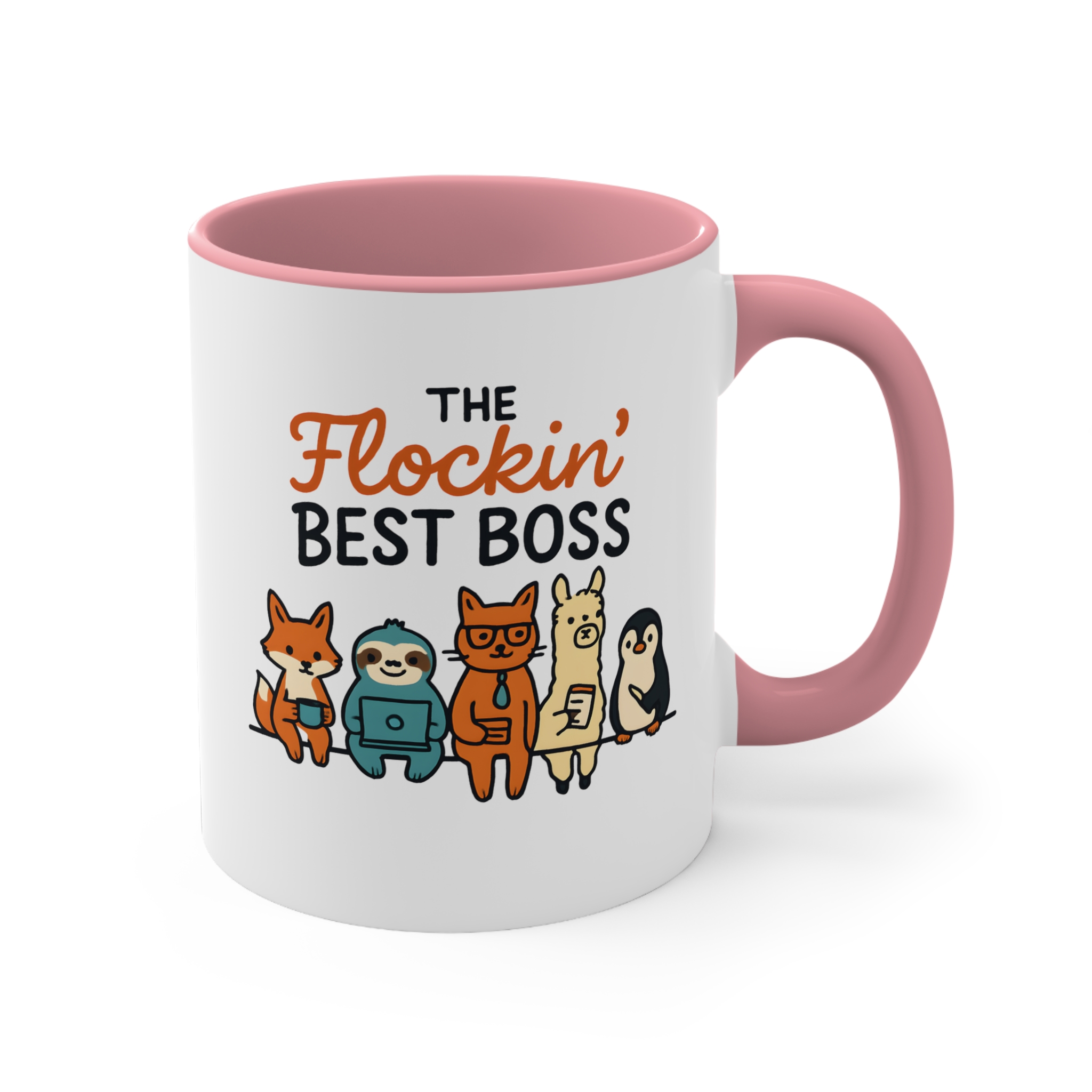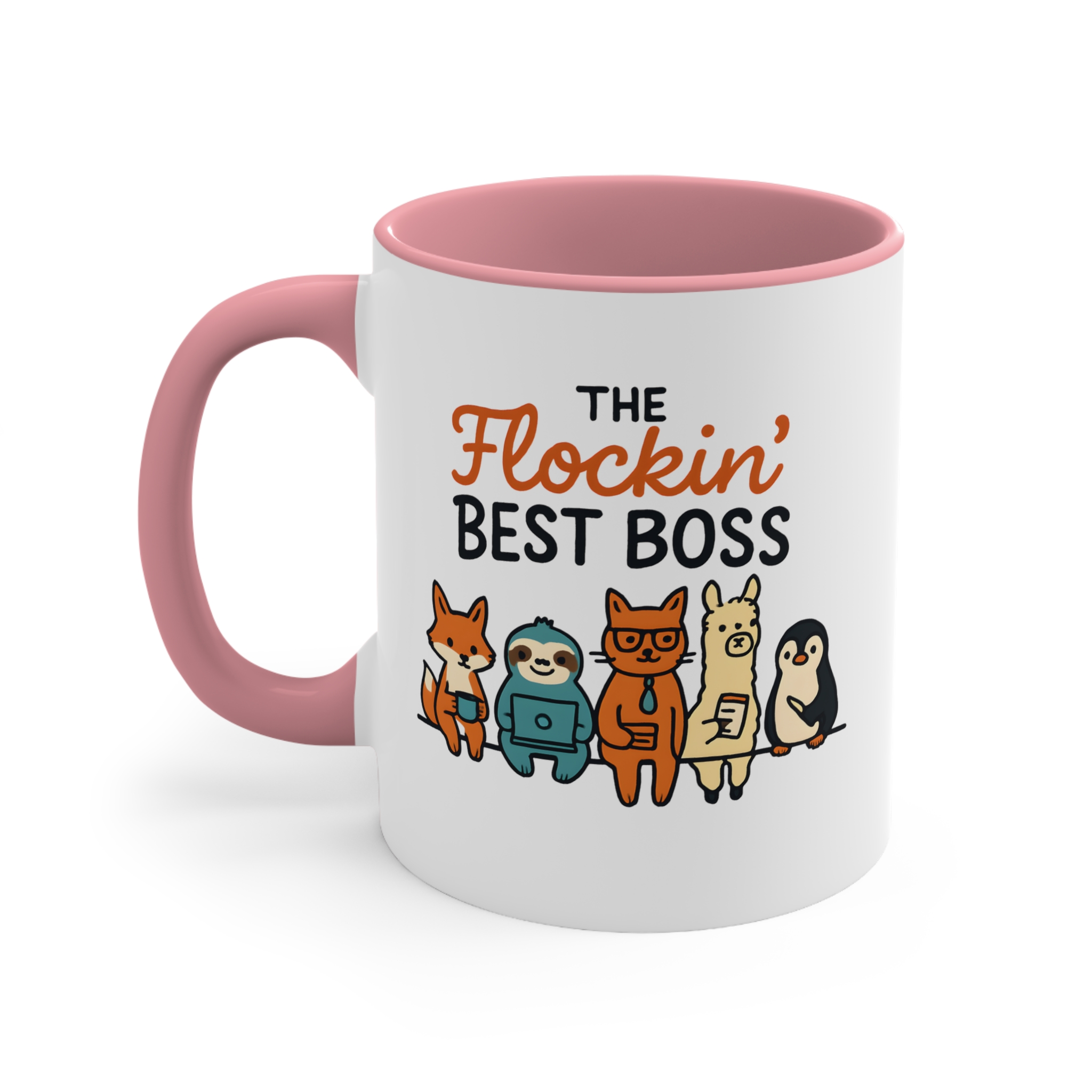 Funny team boss mug designs don’t get much better than this. Featuring the playful phrase “The Flockin’ Best Boss” alongside a fun illustrated team of animals, this mug is a light-hearted way to show appreciation for a boss who keeps the whole team together.