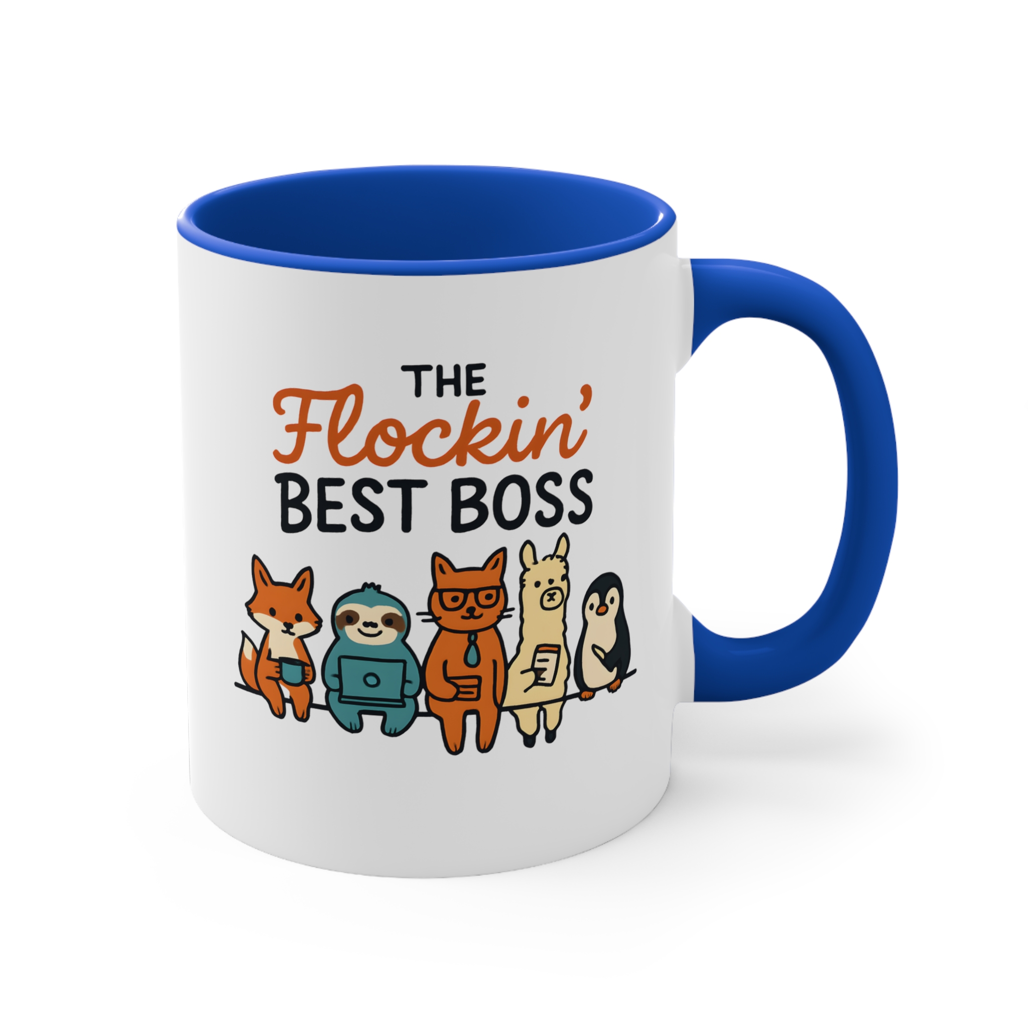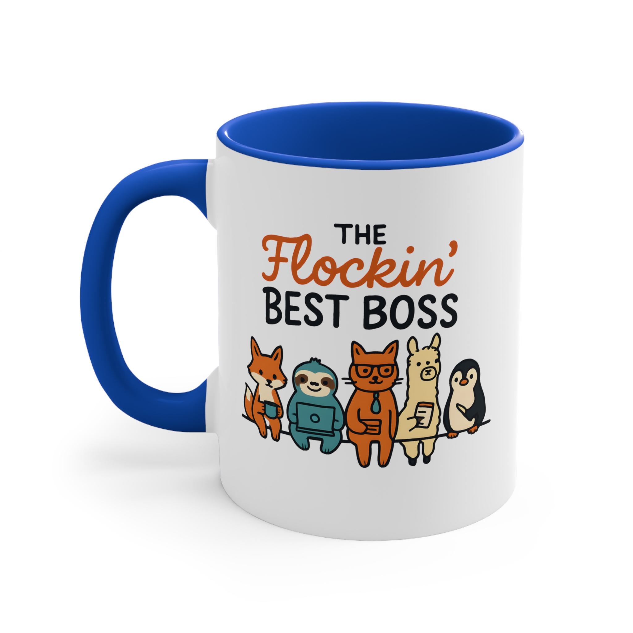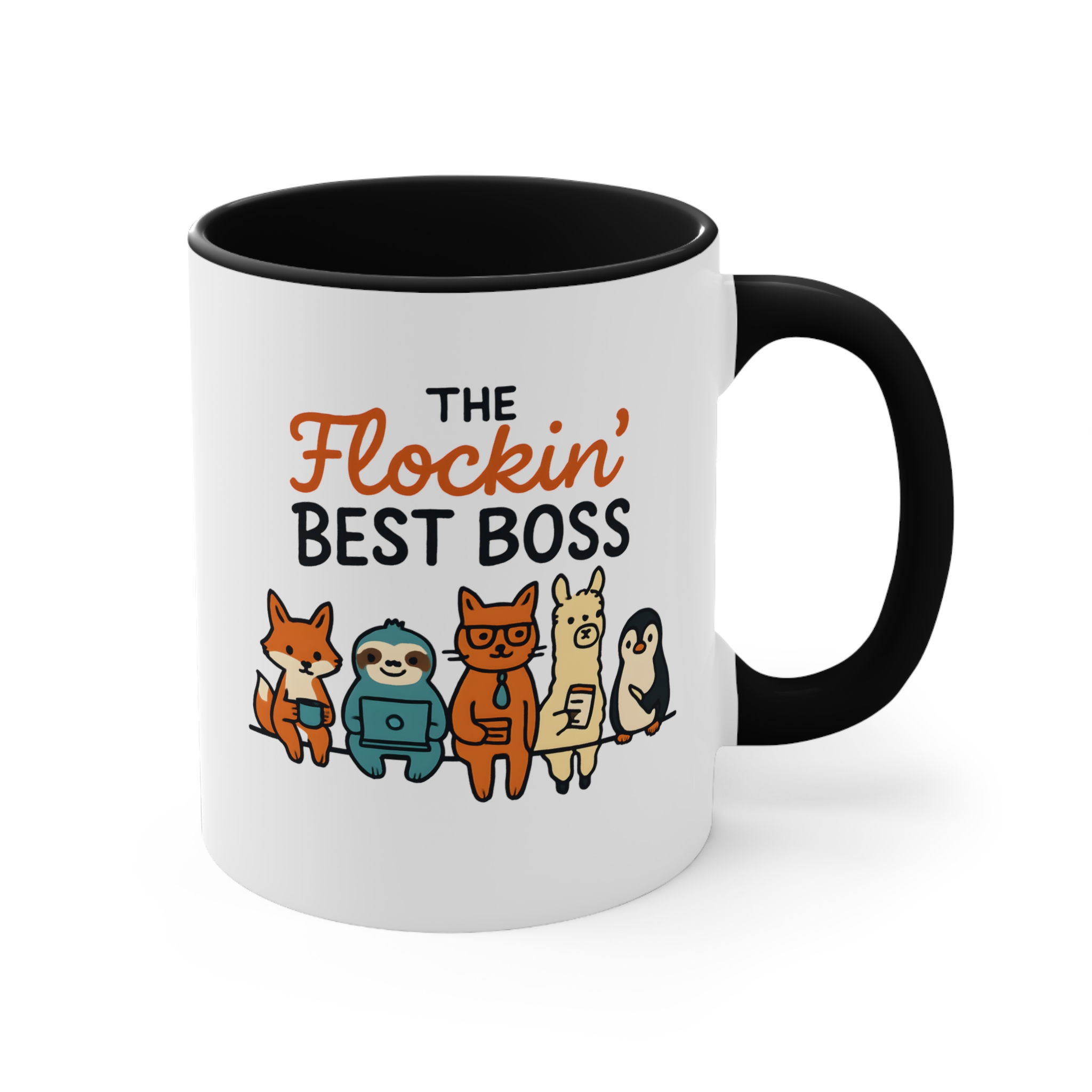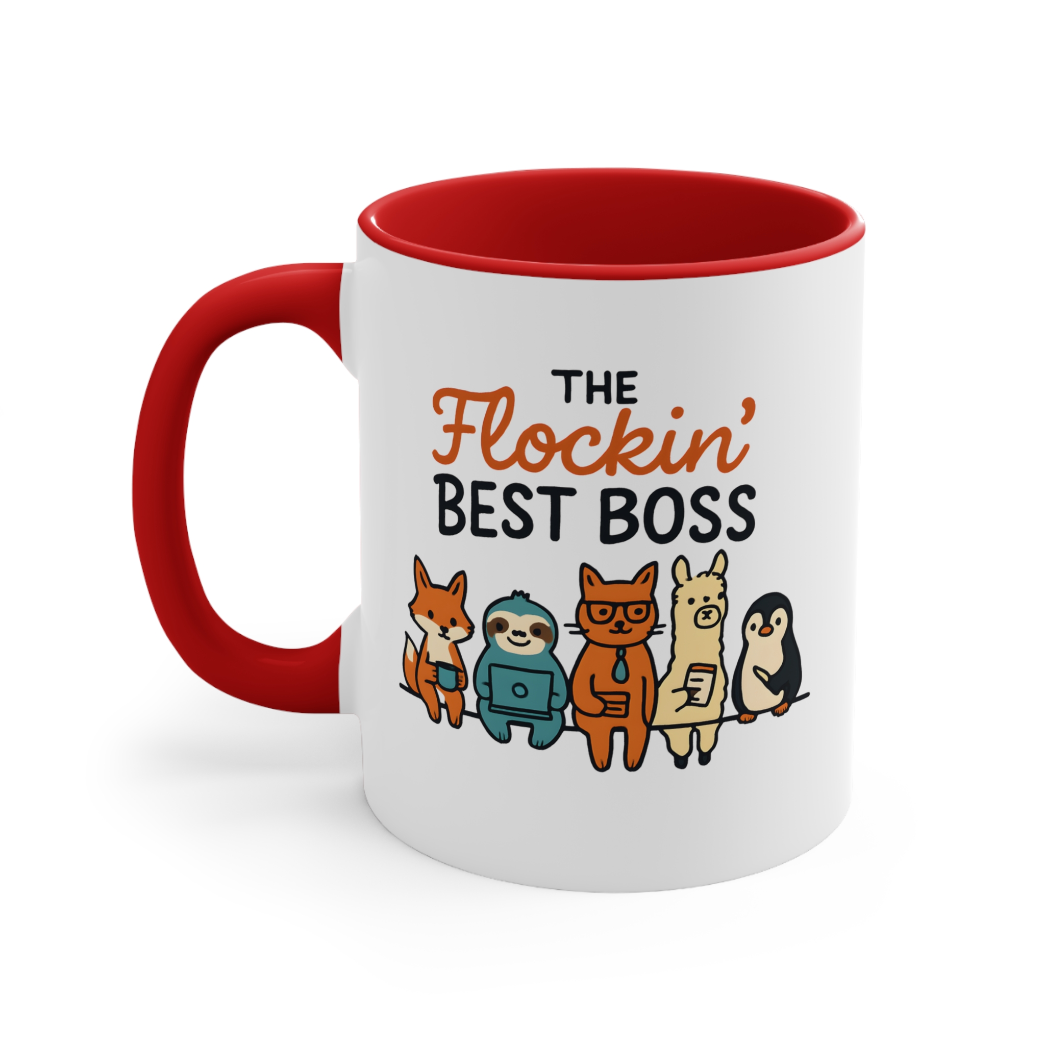 Funny team boss mug designs don’t get much better than this. Featuring the playful phrase “The Flockin’ Best Boss” alongside a fun illustrated team of animals, this mug is a light-hearted way to show appreciation for a boss who keeps the whole team together.