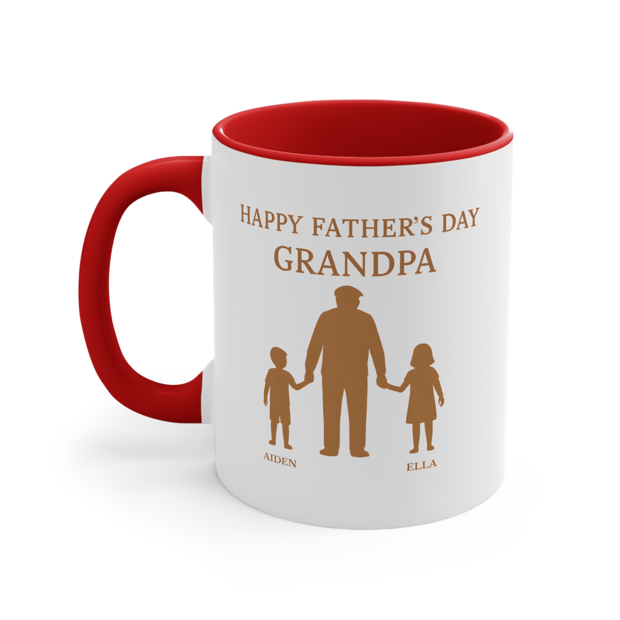 This grandad with grandkids personalised mug is a touching tribute to the special bond between Grandad and his grandchildren. Featuring a beautiful silhouette design of Grandad holding hands with his grandkids, along with custom names, this mug makes a meaningful keepsake gift.