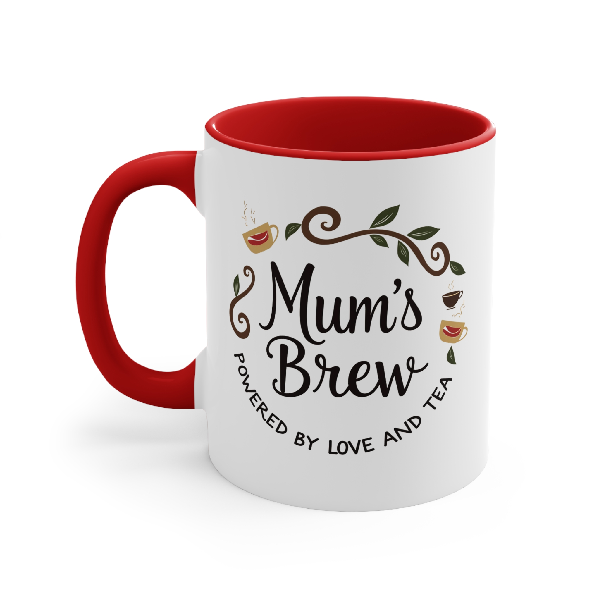 This mum brew mug is made for mums who start their day with a warm brew and a whole lot of love. Featuring a charming “Mum’s Brew – Powered by Love and Tea” design with leafy details and coffee cup icons, this mug brings comfort to every sip.