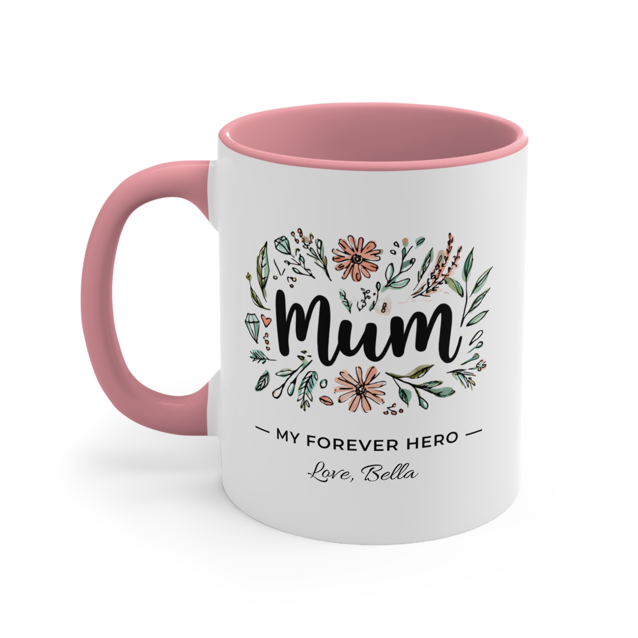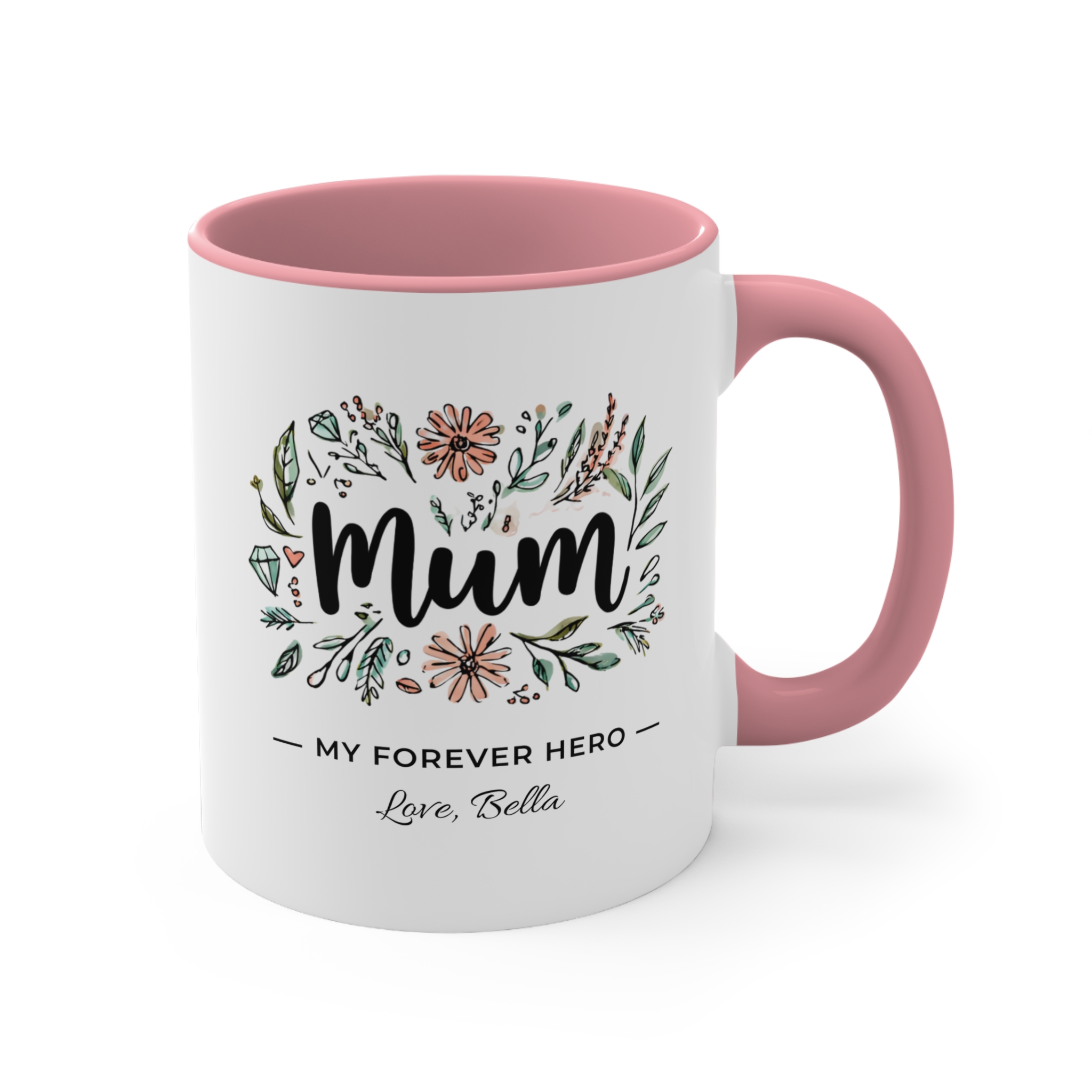 Mum Forever Hero Mug – Personalised Floral Mum Coffee Mug