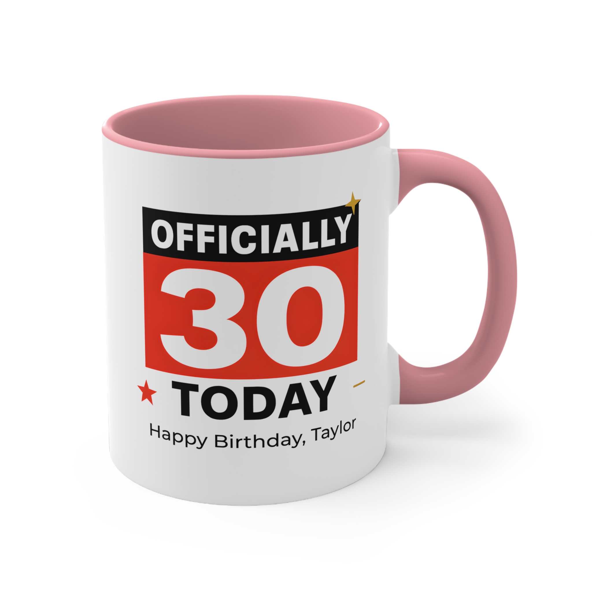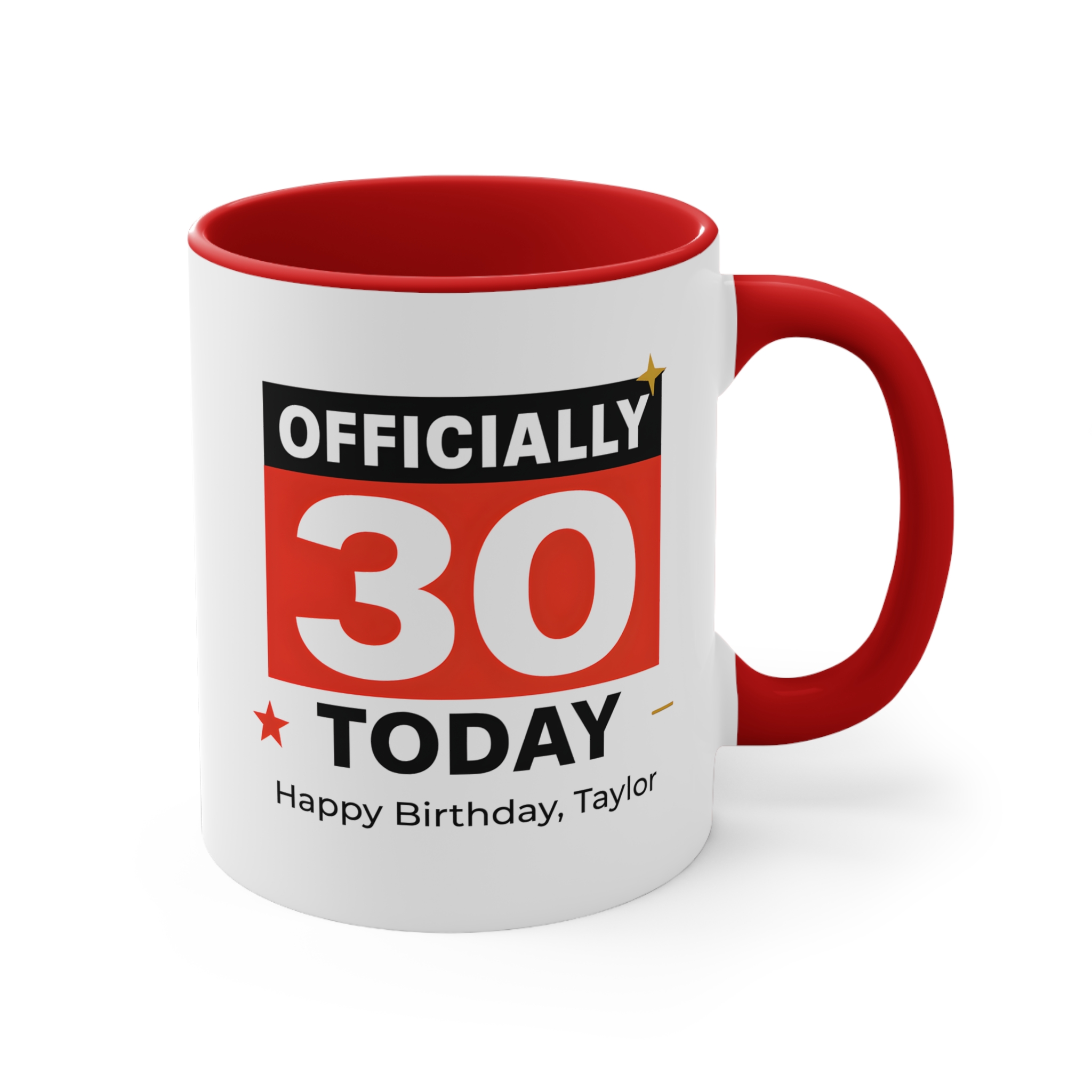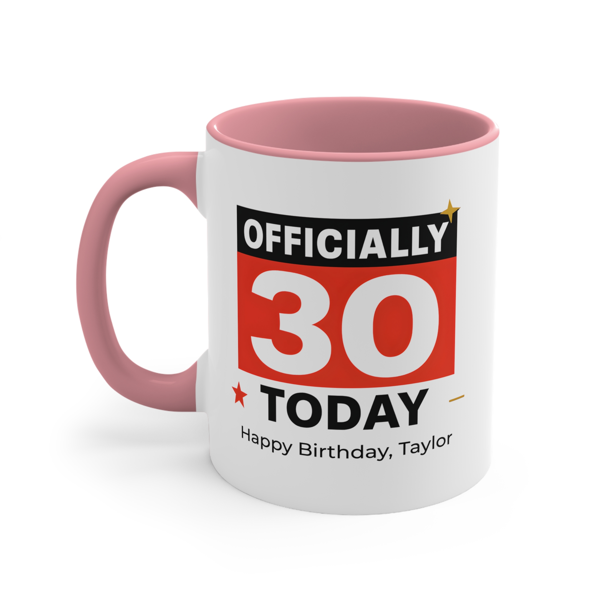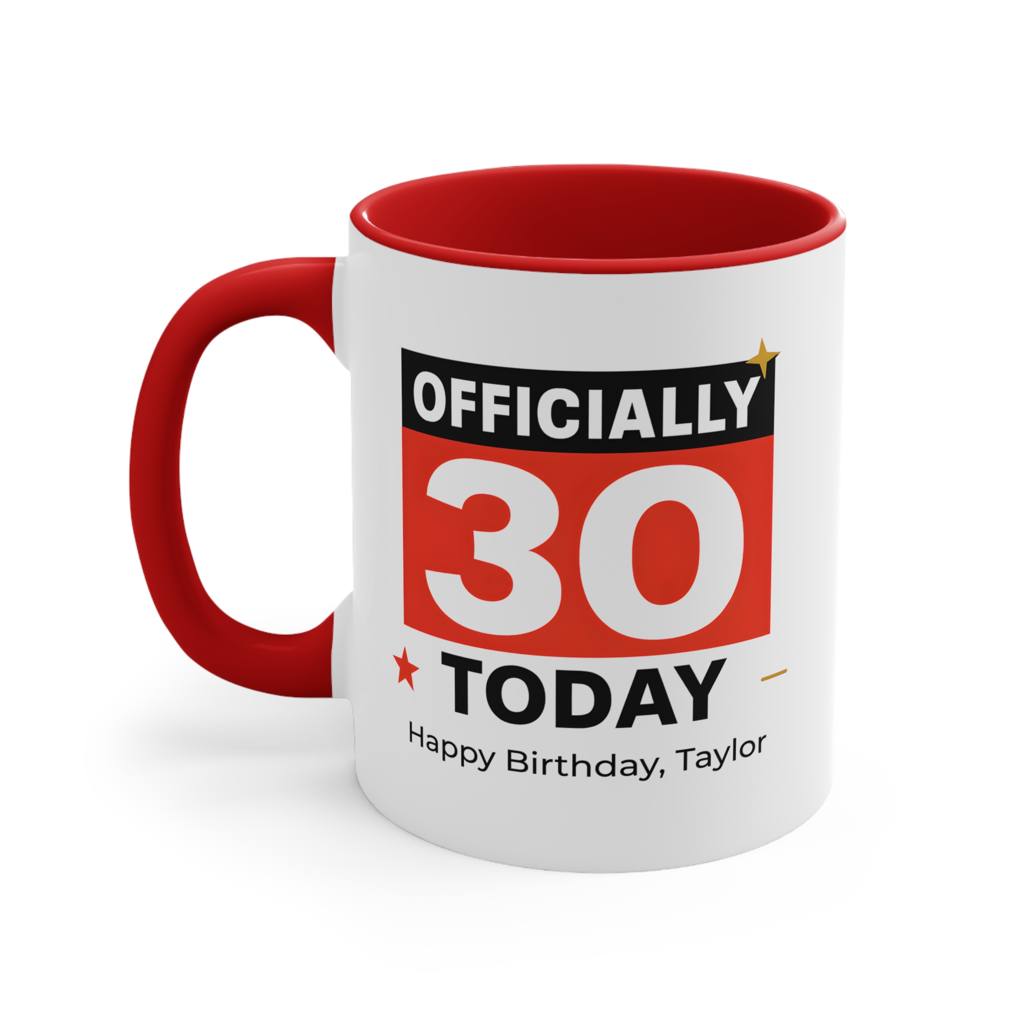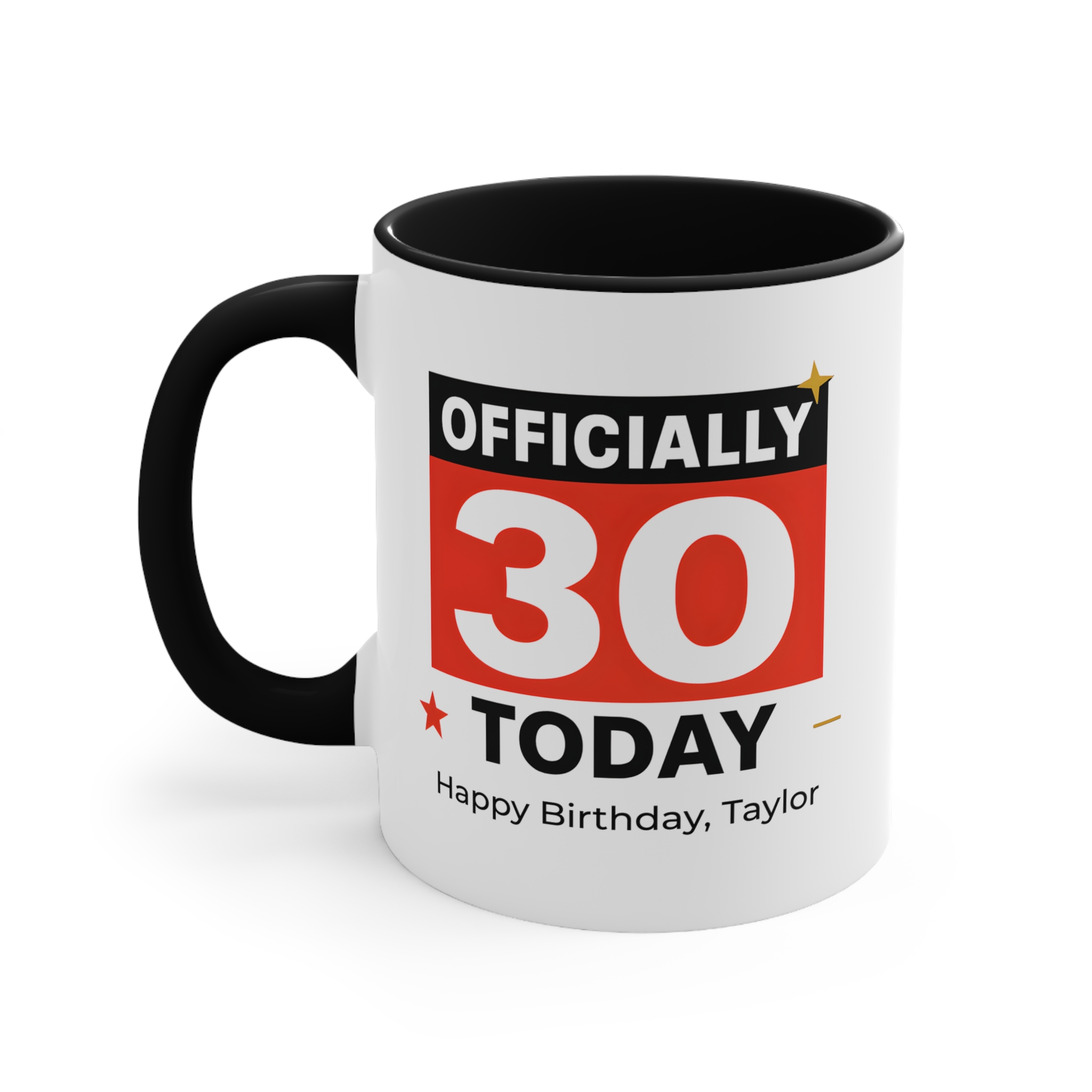 Celebrate a milestone birthday in style with this officially 30 today mug. Featuring a bold and modern design, this personalised birthday mug makes turning 30 even more special.