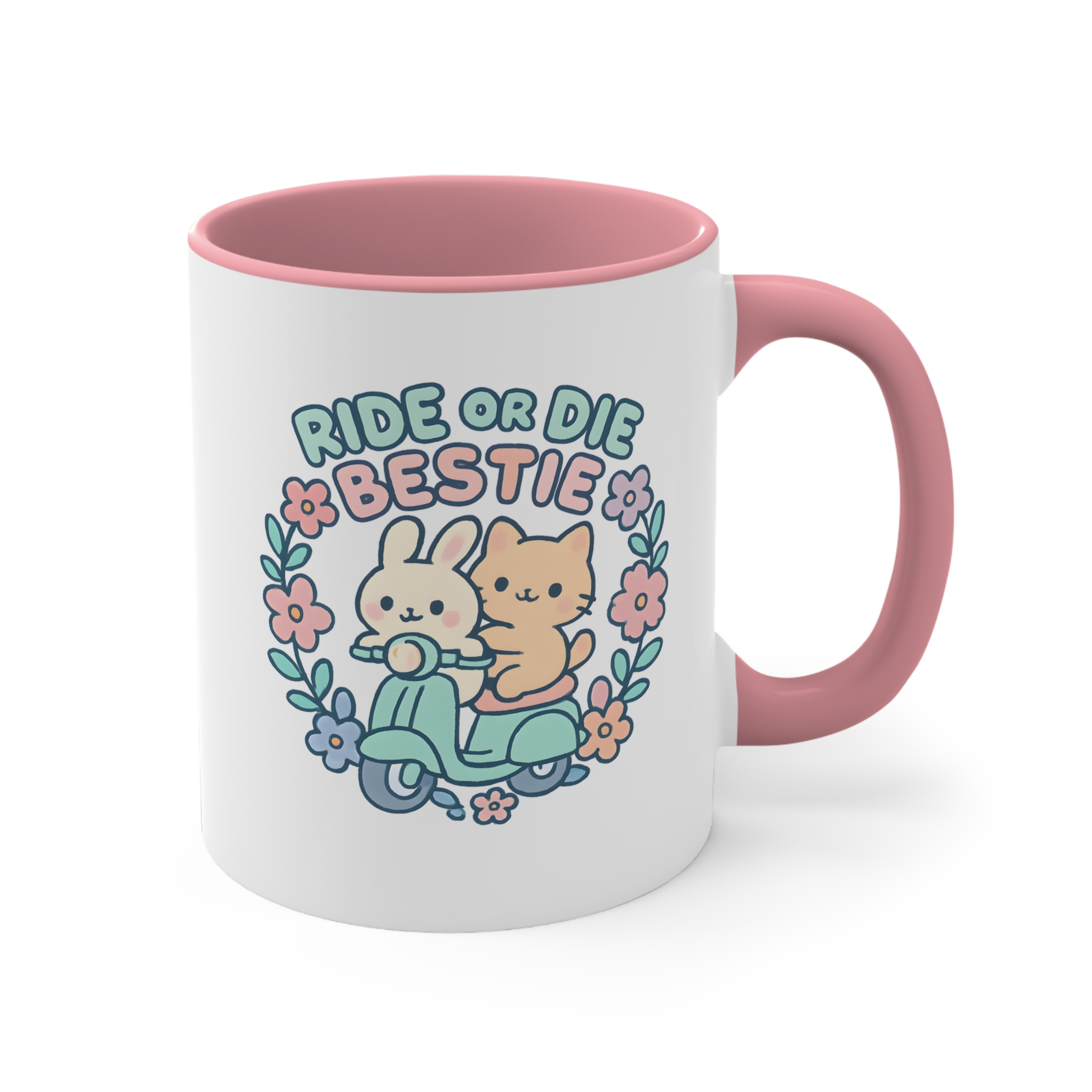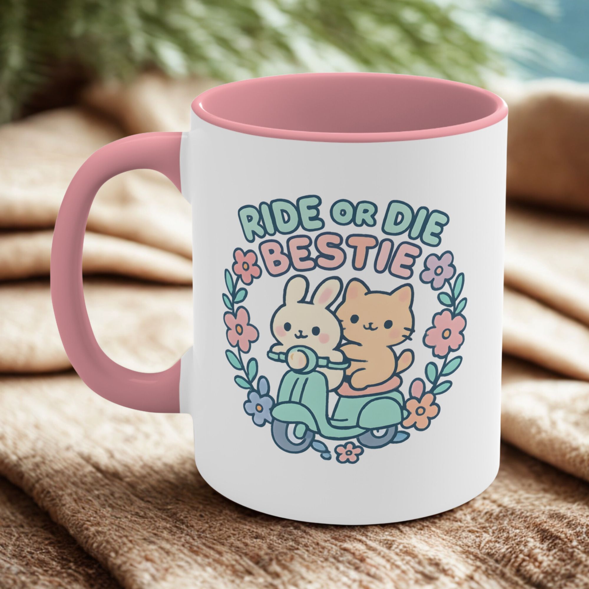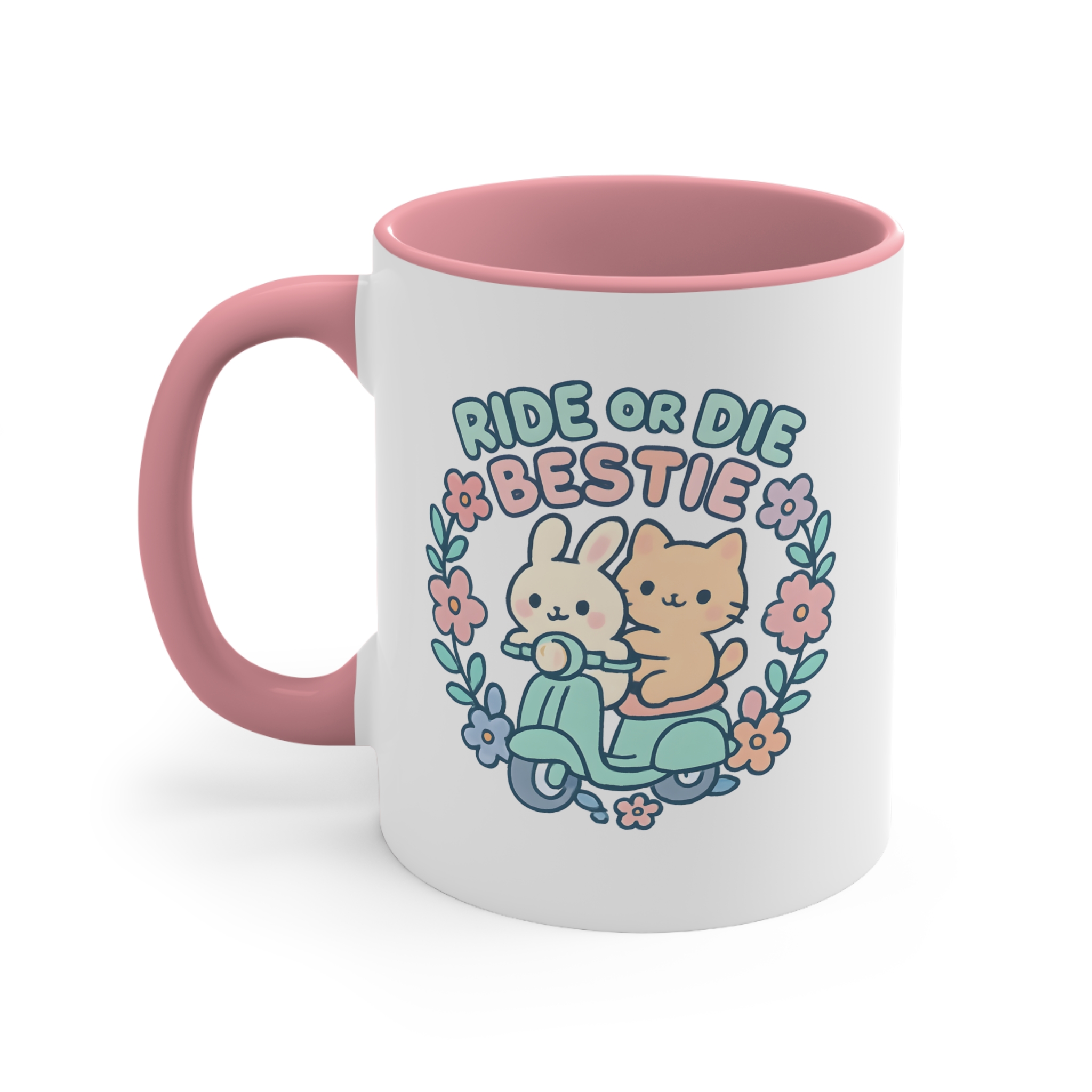 This ride or die bestie mug blends soft colours with an adorable design, making it perfect for cosy mornings and friendship reminders.
